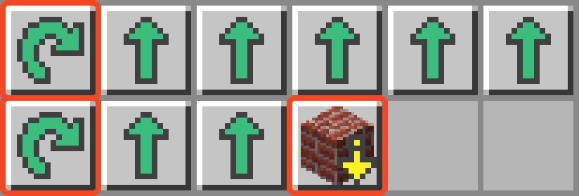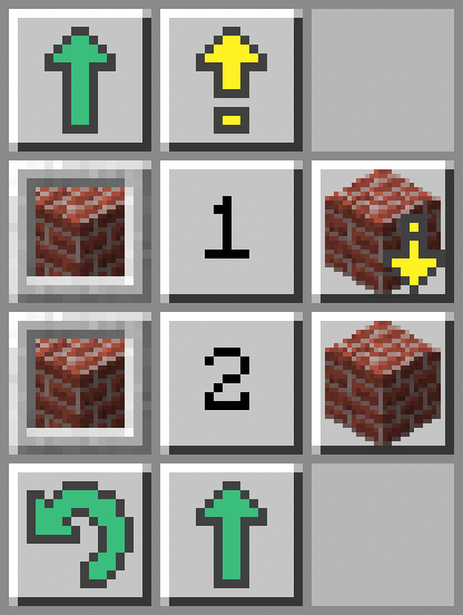 - Włóż do ekwipunku żółwika bloki: Stairs na slot 1; Door na slot 2.