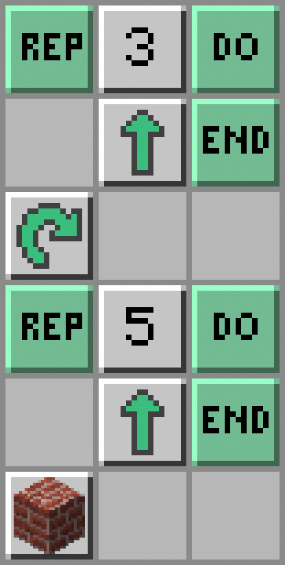 - Żółwik jest oddalony od skrzynki o 8 bloków, skorzystamy więc z odpowiedniej pętli, aby nie wpisywać kilka razy tych samych poleceń. Żółwik powtórzy polecenia 3 razy: Repeat - Number (3) - Do